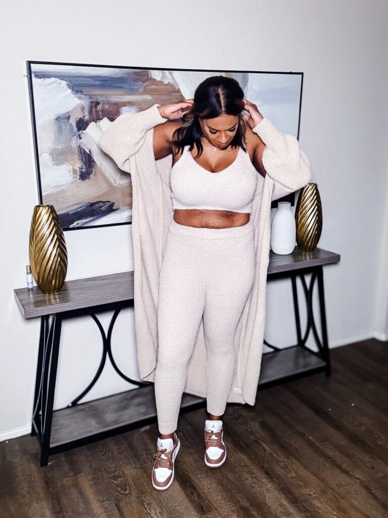 Sometimes, you just have to take a fashion risk—and I’m so glad I did with this fuzzy cream-colored three-piece set from Fashion Nova! I picked it up simply because it was cute, but I wasn’t sure how it would look on me. As a taller, larger woman, I tend to avoid extra fabric, but this set completely surprised me in the best way.